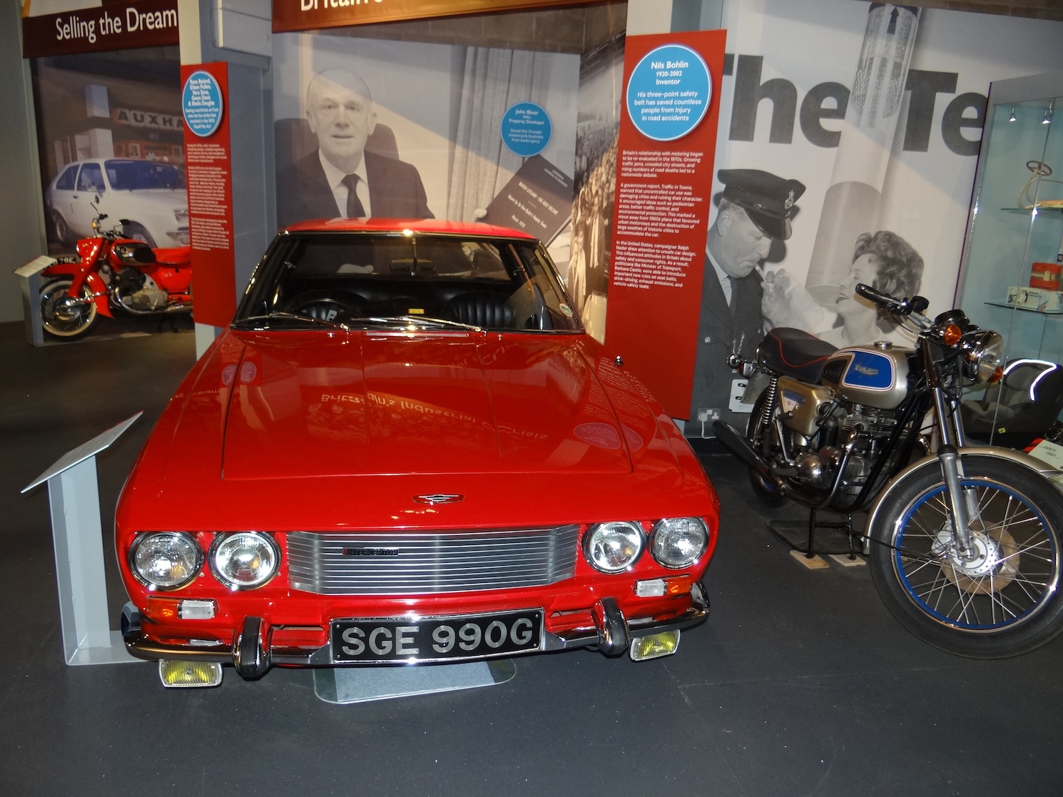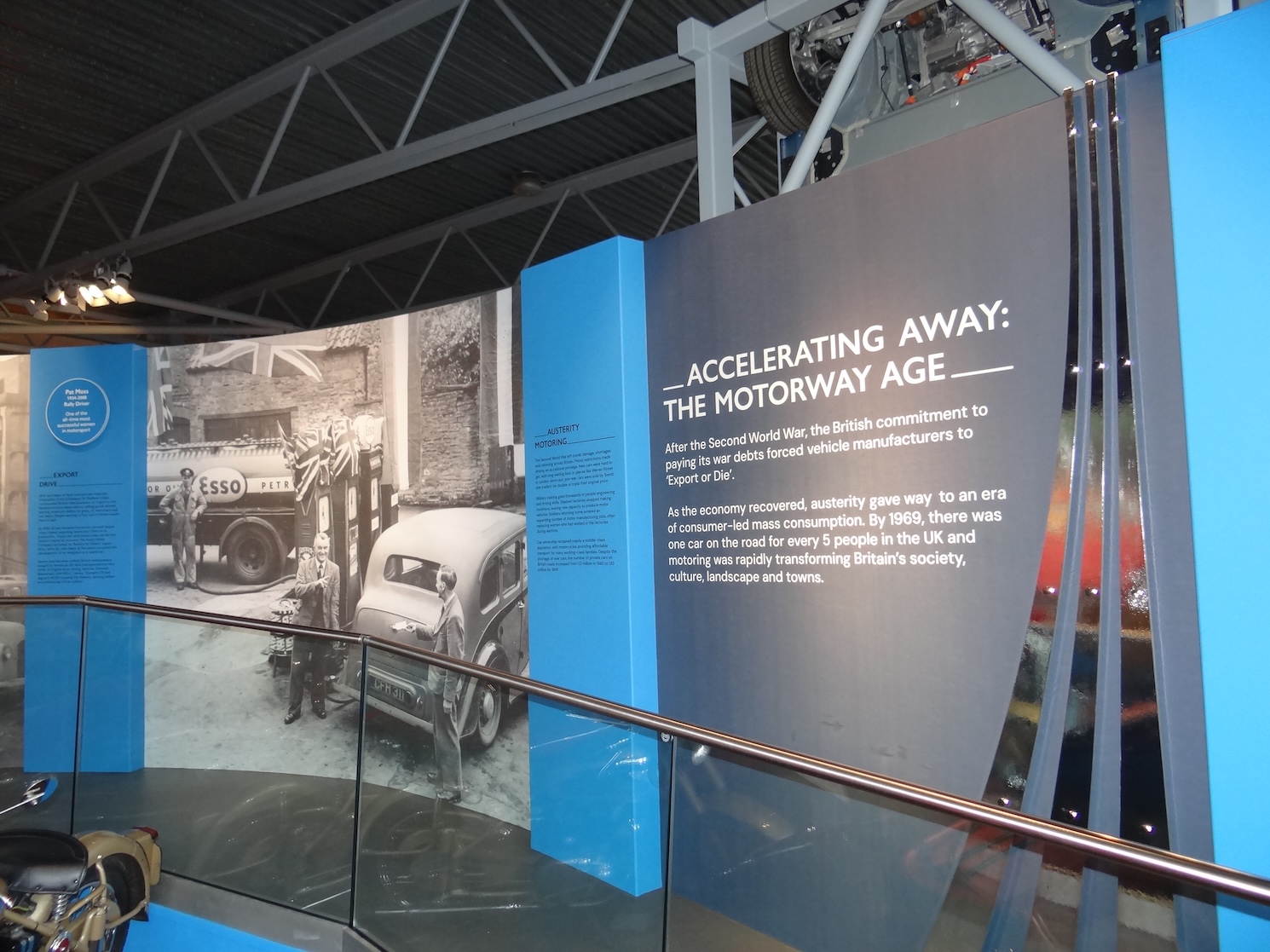 Dotted throughout the display space are ‘blue plaques’ that recognise unsung heroes of motoring such as Nils Bohlin (1920-2002) the inventor of the three-point safety belt, pioneering female motoring journalist and Top Gear presenter Sue Baker, and Rose Boland, Eileen Pullen, Vera Sime, Gwen Davis and Sheila Douglas – sewing machinists at Ford who led a strike that resulted in the 1970 Equal Pay Act.