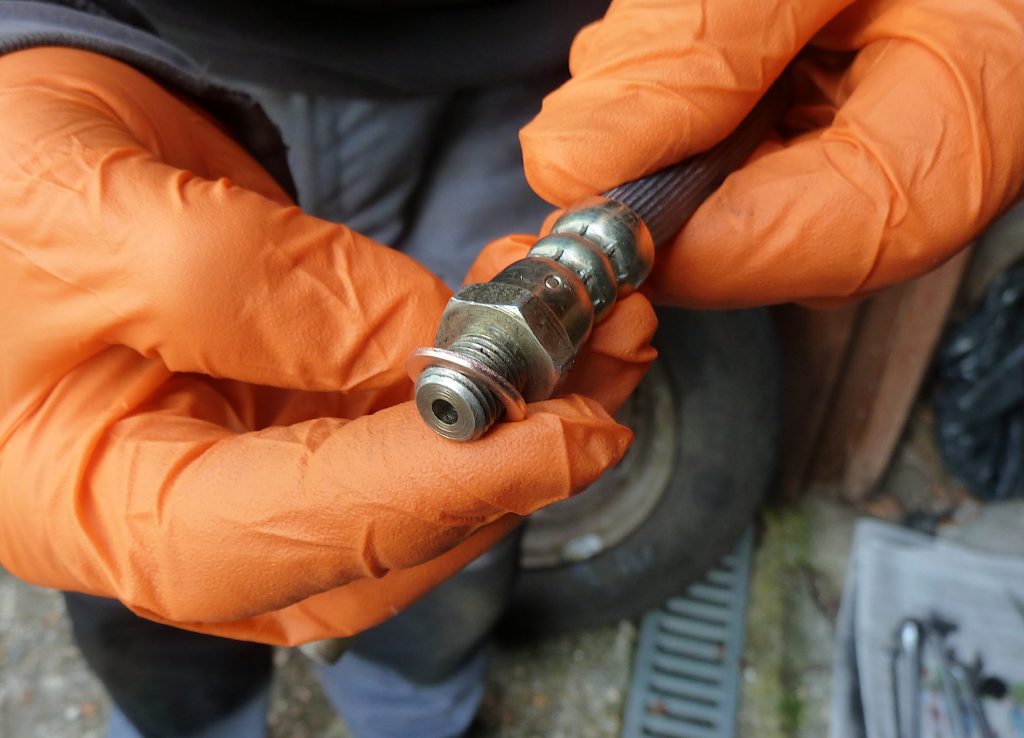 Above: When installing new brake hoses, fit new a new copper sealing washer to the cylinder end of each hose. For many classics these are 3/8in or 10mm diameter, and widely available (the original washer is useful as a guide).