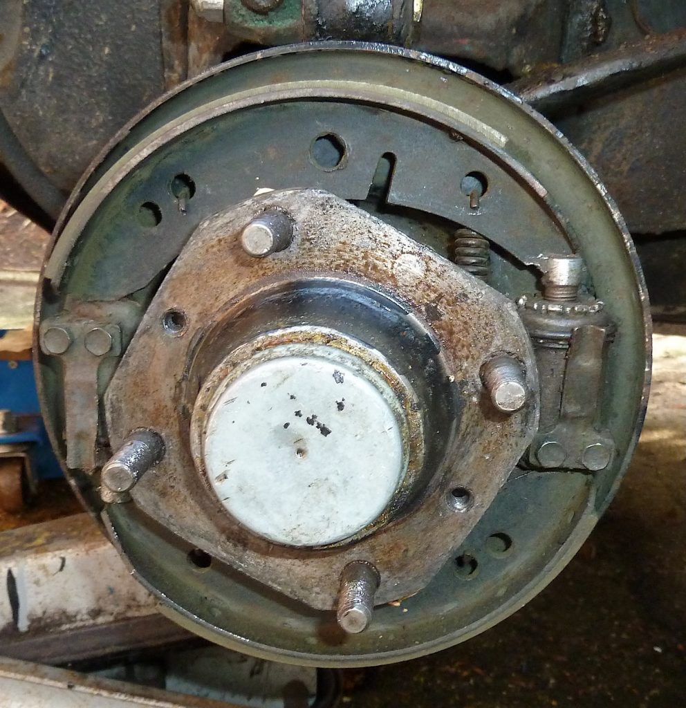 The brake linings appeared to be in good condition so were cleaned with a little brake cleaner liquid (when working on brakes wear a breathing mask and AVOID inhaling any dust, which may contain asbestos) and the brakes were re-assembled and the lining to drum clearance adjusted for all the cylinders, as per the Austin Motor Company’s Workshop Manual.